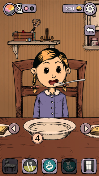在厨房里,您可以为卡琳准备餐食,让她吃饭。每次喂食会消耗一个单位的时间,卡琳会一直吃到她吃饱为止,确保她得到足够的能量。