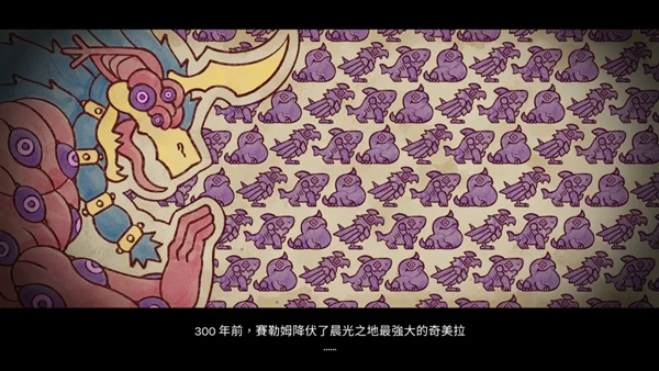 游戏的女主角是具有远大抱负的年轻神骰英雄Alea,她将目标锁定在一切的元凶赛勒姆身上,发誓要号召完美的奇美拉小队,击败各个领地BOSS,最终前往挑战沉睡中的赛勒姆;本作的剧情除开头、结尾动画,剩下的全都靠文献,不过文献每则的数量都很简短,蛮难拼凑出一个完整的故事,所以游戏的剧情不是那么出色,反而是各个奇美拉的介绍更有趣一些。