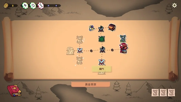 游戏每一局有三大关,每关会有一张小地图,不像一般Rogue会让玩家选择,在神骰英雄中玩家能逛片每个区域,来收服不同的奇美拉与收刮资源和装备,队伍、装备与道具栏位都有限制,怎么挑选奇美拉和装备取舍就很关键,同时战斗钻到的金币可以在商店采买,能买在战斗中使用的代币道具,更能购买新的骰子,并替骰面换上新的效果,这可是破关的一大关键。