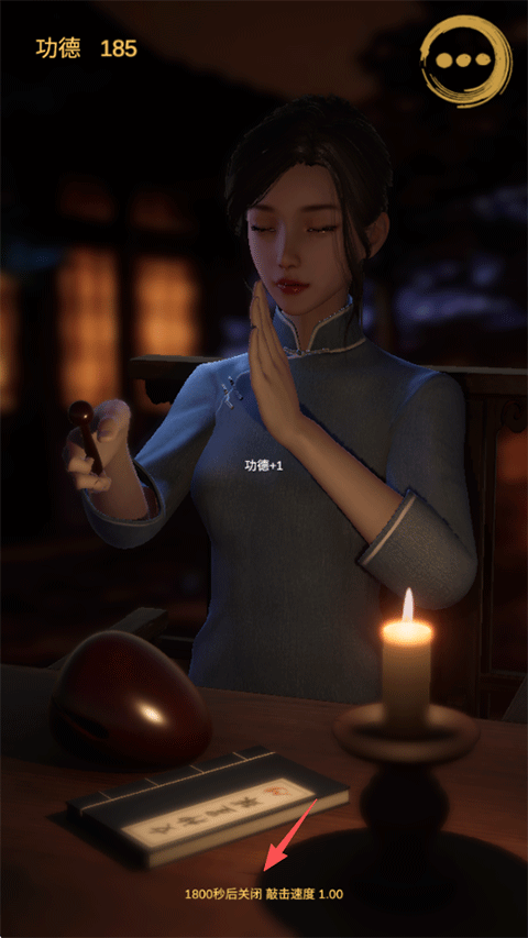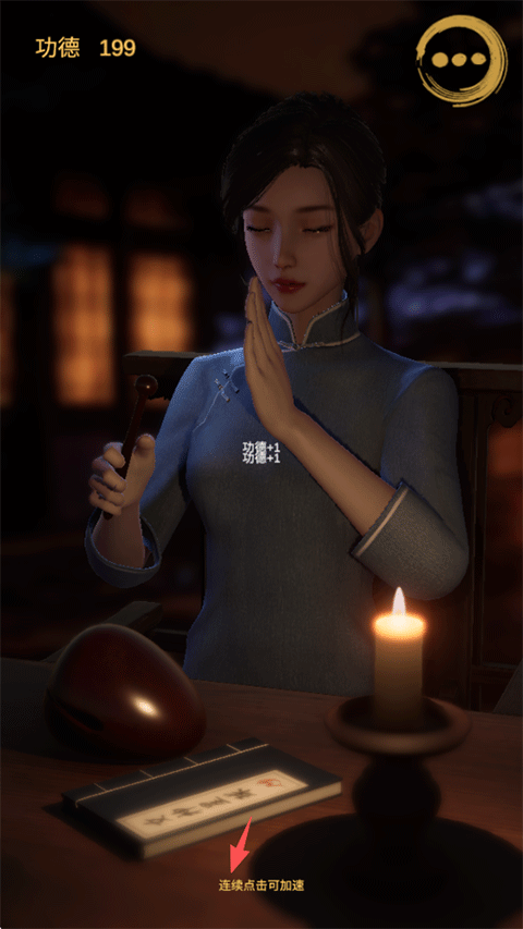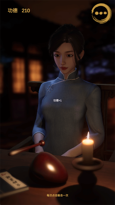 点击界面右上角的【...】图标,您可以在“自动敲击”与“手动敲击”之间自由切换,选择是由女施主代劳,还是亲自参与这场修行。