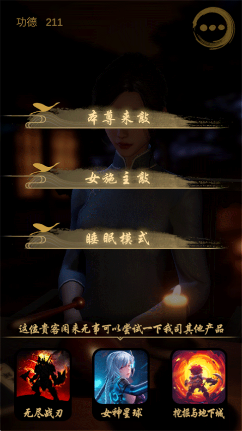 此外,游戏还设有“睡眠模式”,开启后,屏幕将调至最暗,仅保留木鱼声效,为您营造一个极致放松、助眠安神的沉浸式环境。