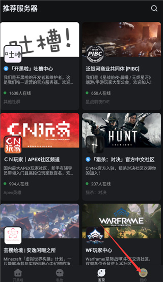 打开这款开黑啦app,在首页中点击“我的”;
