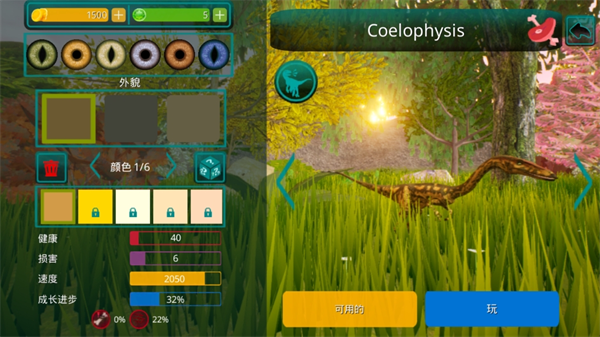 自定义的装扮系统,捏造专属的恐龙形象,在左边可以编辑各种外貌和颜色。