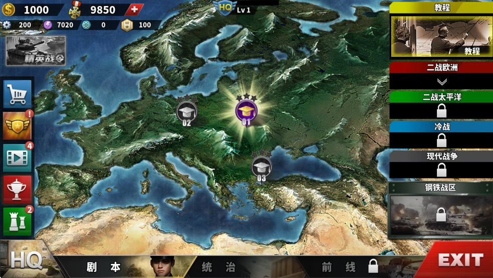 全球地图角逐:玩家可在全球地图上施展才华,实现征服世界的梦想。