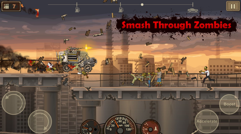 1.一款将赛车竞速与僵尸射击完美结合的创新游戏,带给玩家前所未有的驾驶体验。游戏中的物理碰撞效果非常真实,每一次撞击僵尸都会带来不同的反馈。