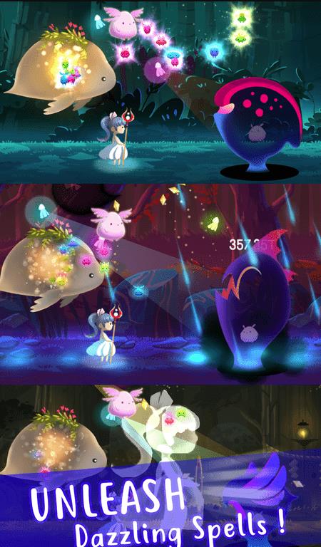 3、战斗系统独具特色,少女可以释放小精灵攻击蘑菇怪,成功击杀后将获得珍贵魔石,用于强化精灵能力,提升战斗力。