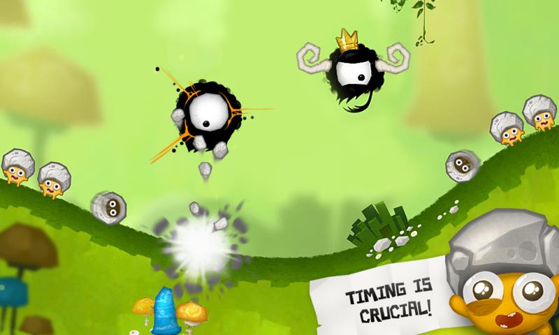 3、游戏操作看似简单实则暗藏玄机。玩家只需点击屏幕上的卵石就能使其滑动,但真正的技巧在于如何让两只运动中的卵石在最佳位置相撞。爆炸产生的碎石会垂直向上飞射,精准命中上方的怪物。更妙的是,被消灭怪物掉落的眼球也能对其他怪物造成伤害,这种连锁反应机制让游戏充满了策略深度。当玩家成功触发多重连锁时,漫天飞舞的眼球构成了一幅令人忍俊不禁又大呼过瘾的壮观画面。