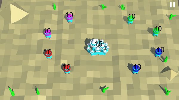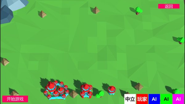 3、玩家将控制地图上的红色城堡,白色城堡为中立区域可被占领,其他颜色的城堡则由AI控制,每个AI都有独特的进攻策略,需要玩家随机应变。