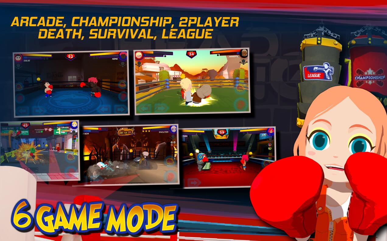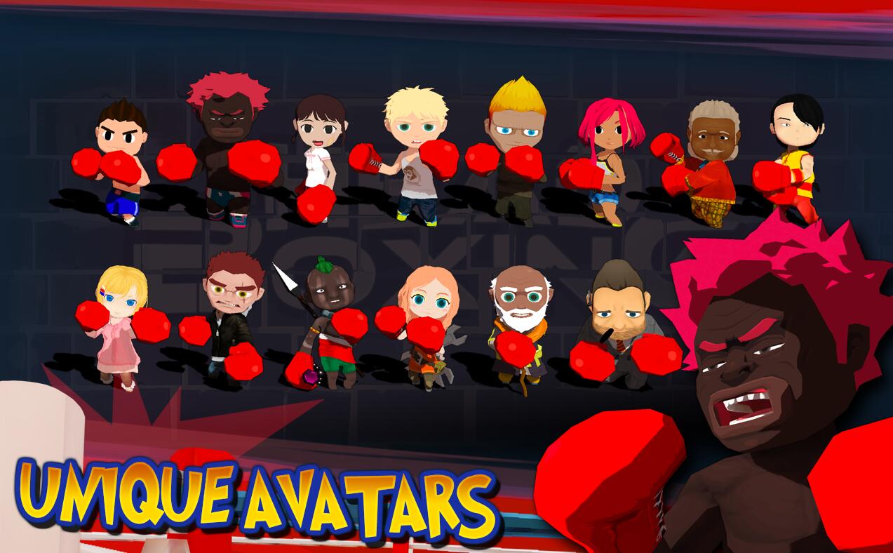 1、游戏设计了100个各具特色的成就任务,每日任务系统保证玩家每天都有新挑战。2、音效方面邀请了专业配音演员为每个角色录制了搞笑的战斗台词和胜利宣言。3、角色表情系统极其丰富,从得意洋洋到被打得鼻青脸肿,各种夸张表情应有尽有。4、创新的骨折系统真实模拟了拳击比赛中可能发生的伤害,当角色特定部位受到重击时,会出现骨折效果,影响移动或攻击能力,为比赛增添了更多变数。
