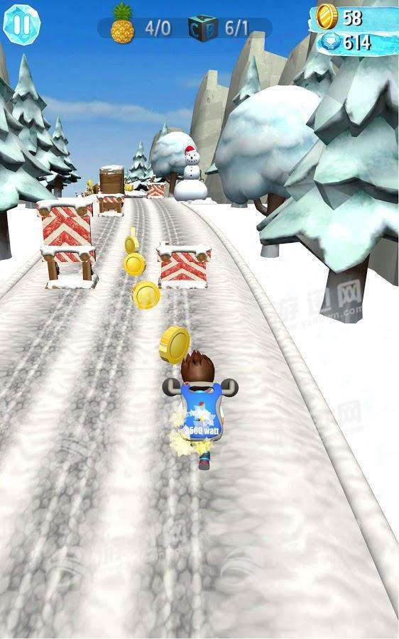 《雪地奔跑》是一款充满童趣与冒险精神的3D跑酷游戏,采用明亮活泼的动画风格打造冰雪世界。玩家将化身勇敢的莱德,在银装素裹的森林中展开惊险营救。当邪恶的洛基元帅将小狗巡逻队困在冰封丛林时,你需要通过精准的滑屏操作,帮助莱德穿越重重障碍——跳跃悬崖裂缝、闪避突然出现的雪堆、收集沿途的金币,最终解救出所有被困的巡逻队员。游戏巧妙融合了剧情叙事与跑酷玩法,每个关卡都藏着不同的机关陷阱,考验玩家的即时反应能力。