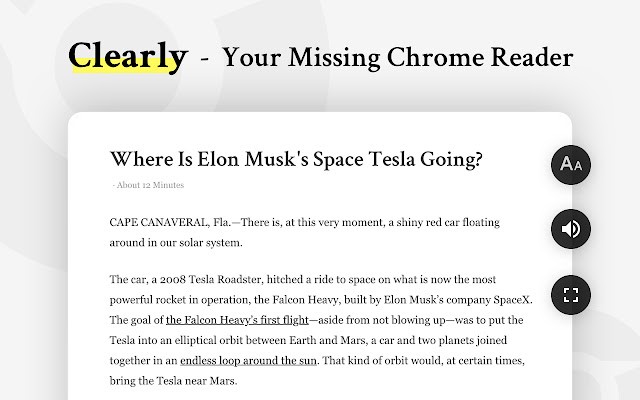 ClearlyReader清晰的读者是一款专为提升网页阅读体验而设计的谷歌浏览器插件。它通过简洁的界面和强大的功能,帮助用户摆脱广告和杂乱版式的干扰,专注于文章内容本身。无论是调整字体大小、切换主题,还是使用语音朗读功能,ClearlyReader都能满足不同用户的个性化需求。只需一键点击,即可进入沉浸式阅读模式,享受纯净的阅读时光。这款插件特别适合需要长时间浏览网页内容的用户,让阅读变得更加轻松愉悦。
