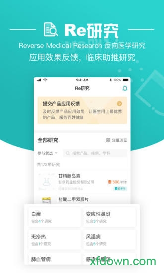 2、全新升级【re研究】功能,建立临床研究反馈机制,收集真实世界数据,分析临床应用效果,为医学研究提供有力支持,推动医学进步;