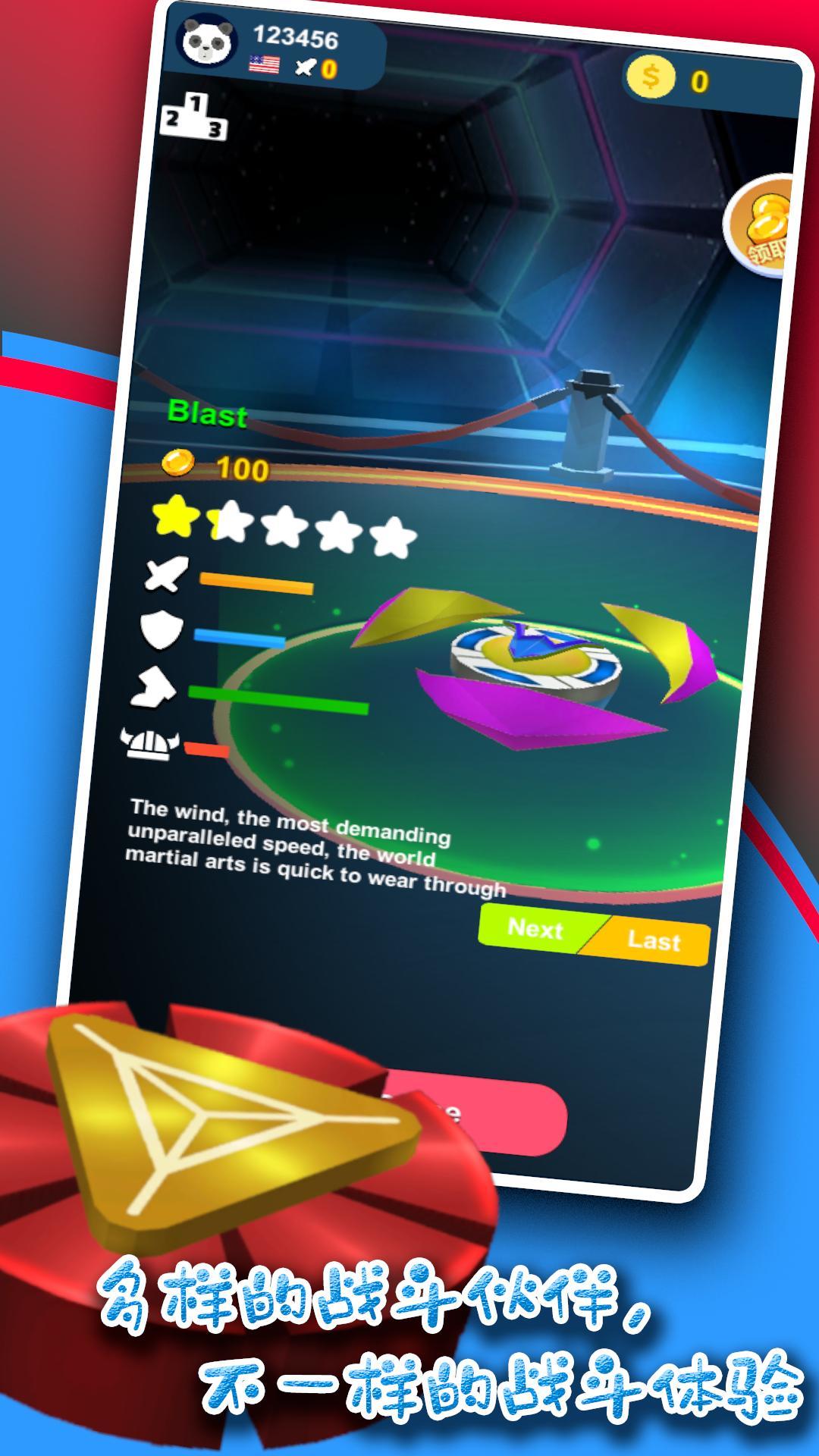 1.游戏采用先进的3D物理引擎,完美还原了陀螺对战的真实物理效果。玩家可以在多样化的竞技场中进行对战,每个场景都有独特的机关和地形设计,为对战增添更多策略性。从城市广场到古代遗迹,每个地图都会带来全新的战斗体验。