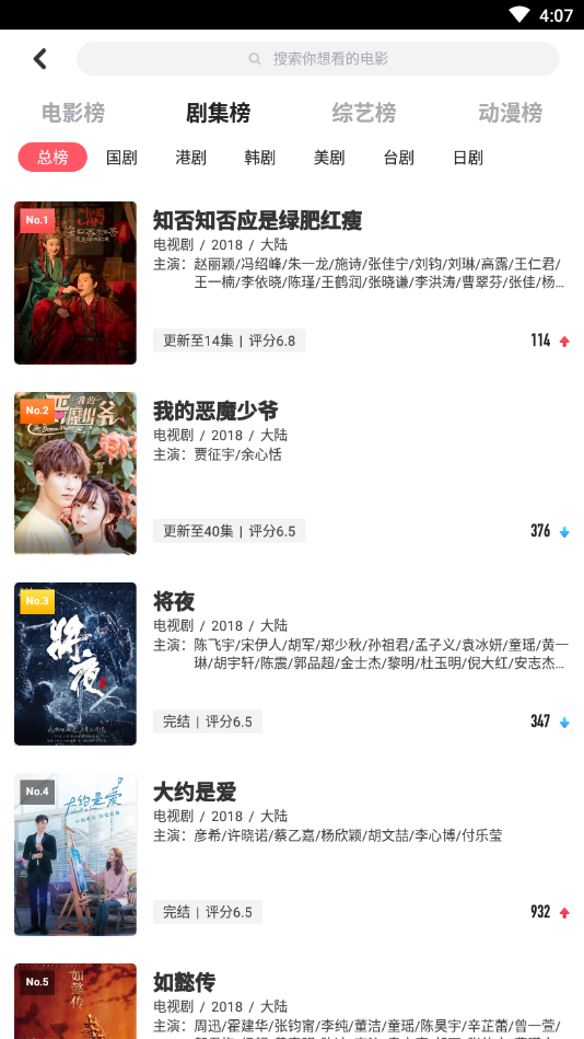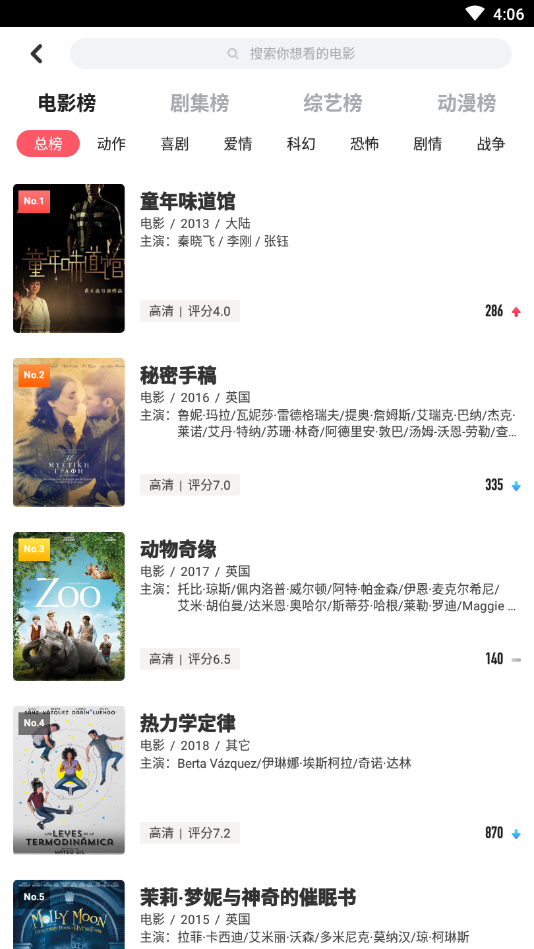 2、查看排行榜了解好看的电视剧、电影,这里提供了电影榜、剧集榜、综艺榜、动漫榜;每个榜单都经过专业编辑团队精心筛选,反映当前最受欢迎的影视作品,为用户提供权威的观影指南。