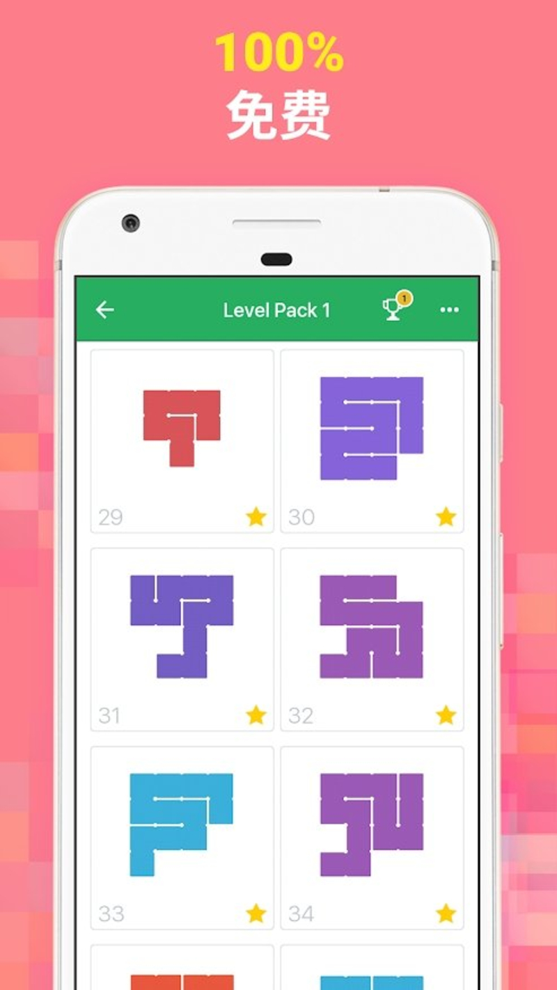 用方块填满所有空白处,必须一笔画完不能断。非常适合消磨时间,帮助大脑随时保持活跃。这款游戏的谜题可难可易,但是每一道都需要你仔细规划。游戏开始时会有简单教程引导玩家熟悉操作,之后就可以自由挑战各种难度的关卡。玩家需要用手指在屏幕上滑动,将相同颜色的方块用线条连接起来,同时要确保所有空白区域都被填满。游戏设有多种特殊方块和障碍物,增加了玩法的多样性。完成关卡后系统会根据连线次数和时间给出评分,激励玩家追求更完美的解法。