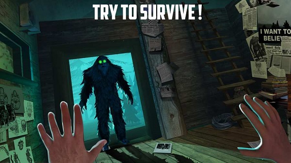 大脚怪猎人是一款融合了恐怖元素与生存挑战的第一人称冒险游戏。关于大脚怪的传说在世界各地流传已久,这种神秘生物被描述为体型巨大、浑身长毛、直立行走的类人生物。尽管科学界对其存在持怀疑态度,但无数目击报告和模糊影像持续引发着人们的好奇心。
