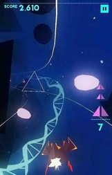 游戏的核心玩法是操控飞船在三角形轨道上飞行,玩家需要通过左右滑动来切换轨道,收集与目标颜色相匹配的三角块。右侧会实时显示当前需要收集的两种颜色三角块,考验玩家的快速反应能力。在飞行过程中,玩家不仅要灵活躲避障碍物,还要找准时机向前滑动来冲破三角墙。游戏操作简单易上手,但随着速度的提升和轨道复杂度的增加,挑战性也会逐步升级。每次成功收集三角块都会获得分数加成,连续收集还能触发连击效果。