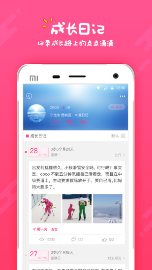 【成长日记】记录成长路上的点滴,自动生成精美成长相册,还能添加文字描述和语音备注,让珍贵回忆永不褪色。同时可以寻找志同道合的家长朋友,一起分享育儿喜悦。