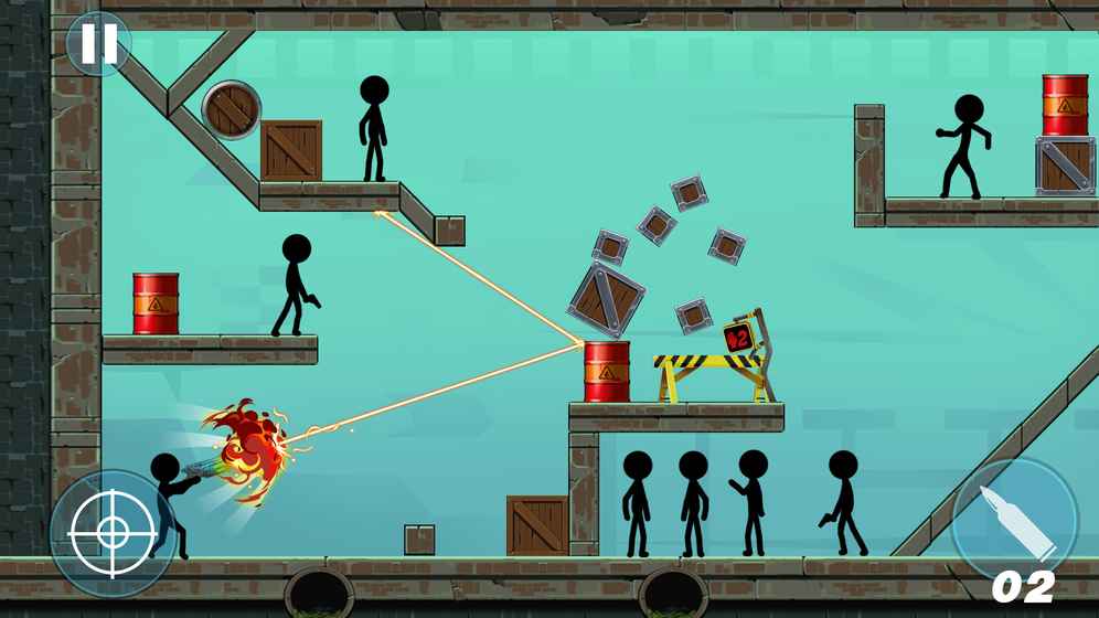 营救火柴人(stickprisonerrescue)是一款融合了动作冒险与策略解谜元素的精品手游。在游戏中,玩家需要运用智慧和技巧,操控火柴人角色穿越重重障碍,解救被困的同伴。游戏采用创新的物理反弹机制,玩家可以利用墙壁、平台等环境要素实现精准的反弹射击,这种独特的玩法为游戏增添了更多策略性和趣味性。随着游戏进程的推进,玩家将解锁更多强力武器和特殊能力,包括能够穿透障碍的激光枪、范围杀伤的散弹枪等,每种武器都能带来截然不同的战斗体验。