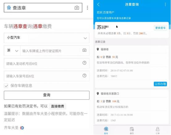 自从有了车,平时最关心的就是自己是否违章,驾照分扣了多少(毕竟可以扣的分并不多)。这款齐车大圣查违章智能小程序,有车族绝对值得拥有。支持用户在线一键查违章,违章罚款代缴费等服务,用完即走,不占内存可以说便捷度满分。